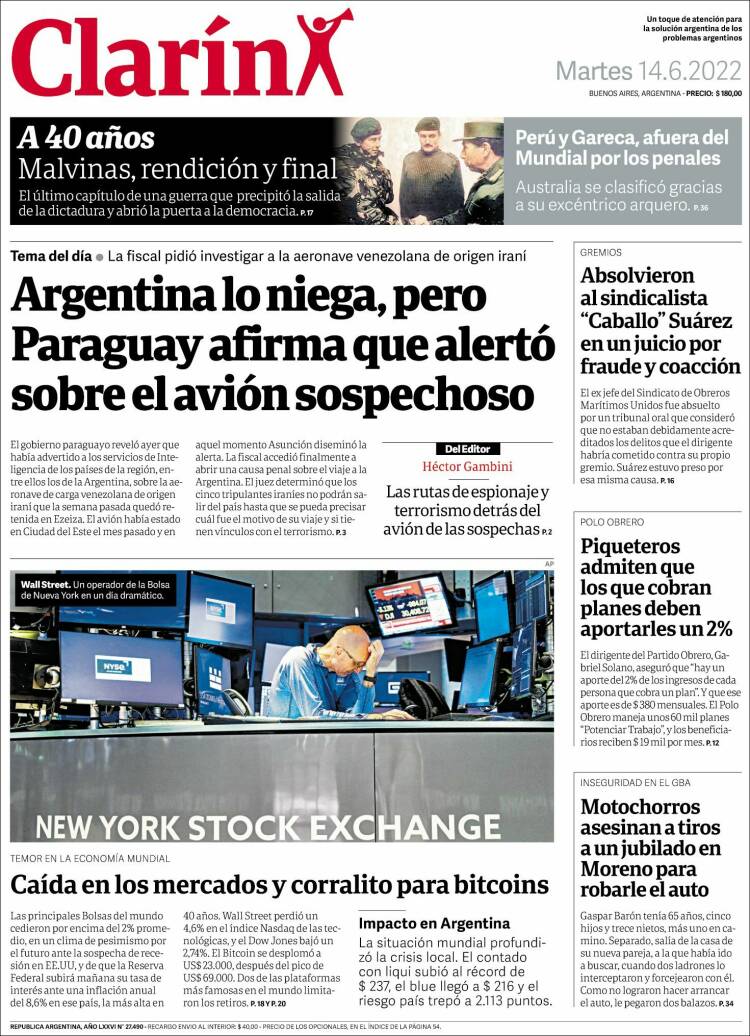 Las tapas de los principales diarios nacionales del 14 de junio
