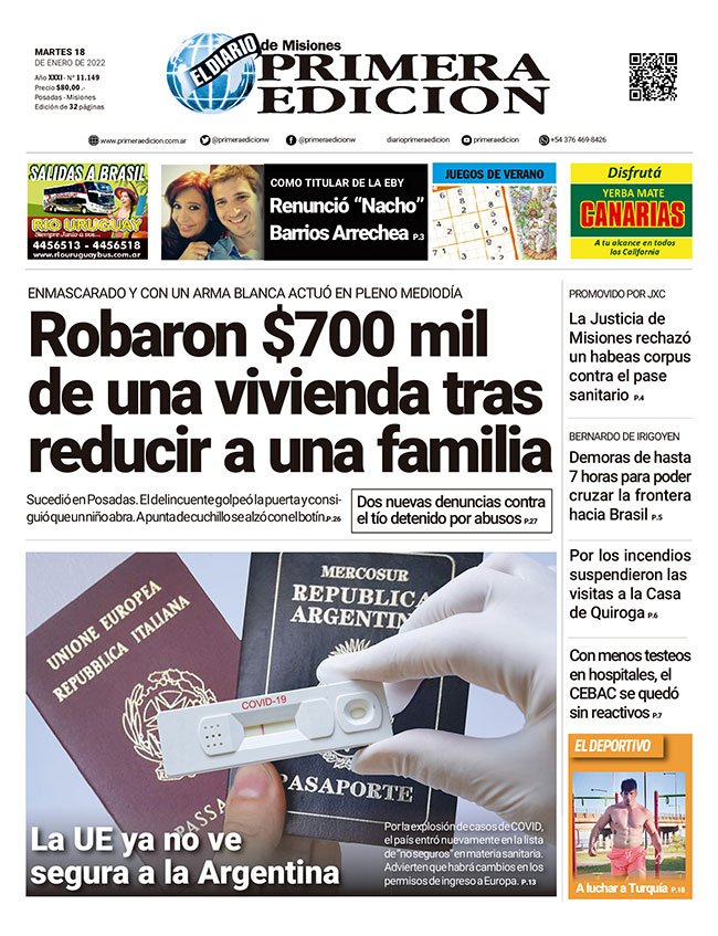 Portadas de los principales diarios nacionales – martes 18-01-2022