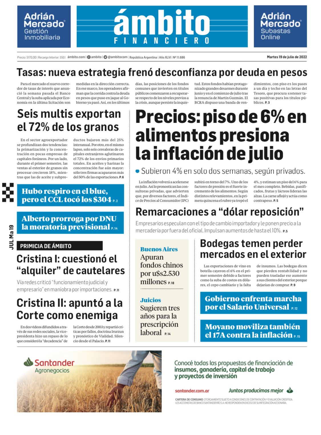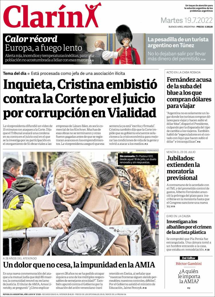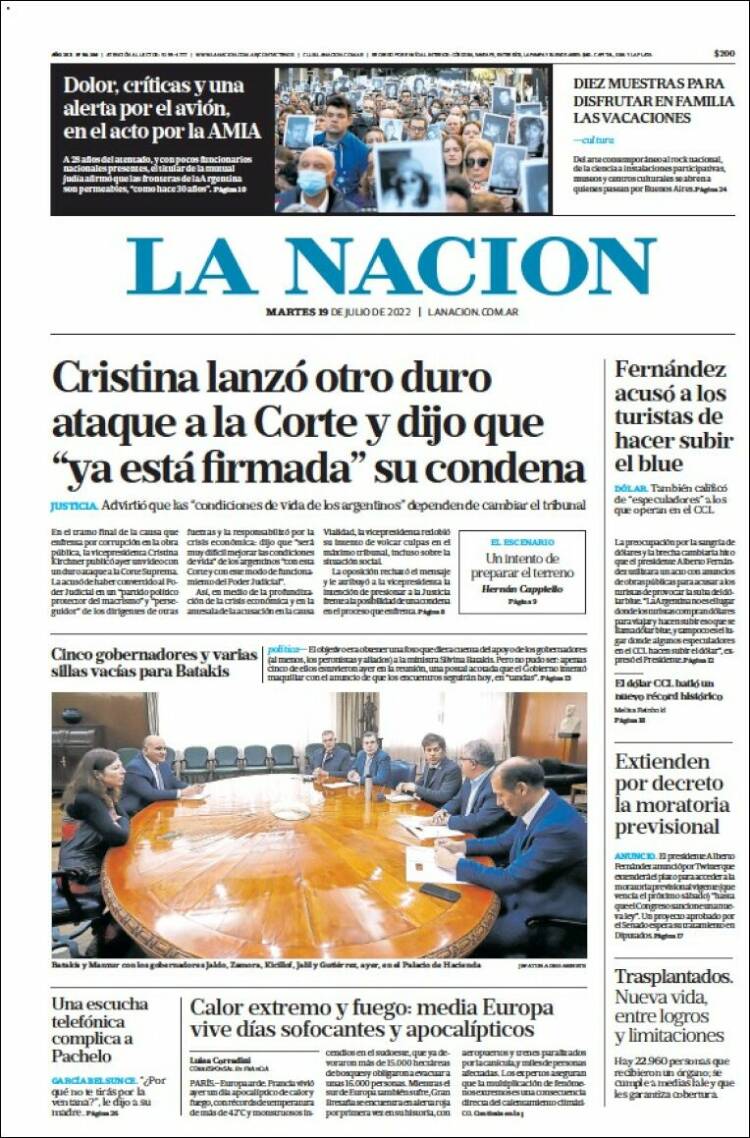 Portadas de los principales diarios nacionales | Martes 19/07/2022