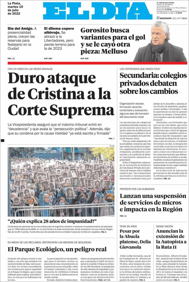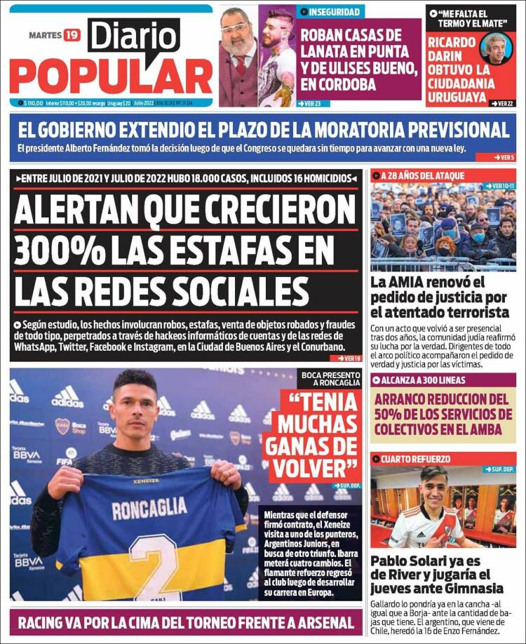 Las tapas de los diarios más importantes del país, de este martes 19 de julio