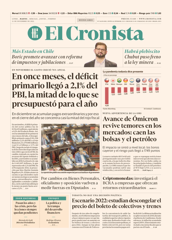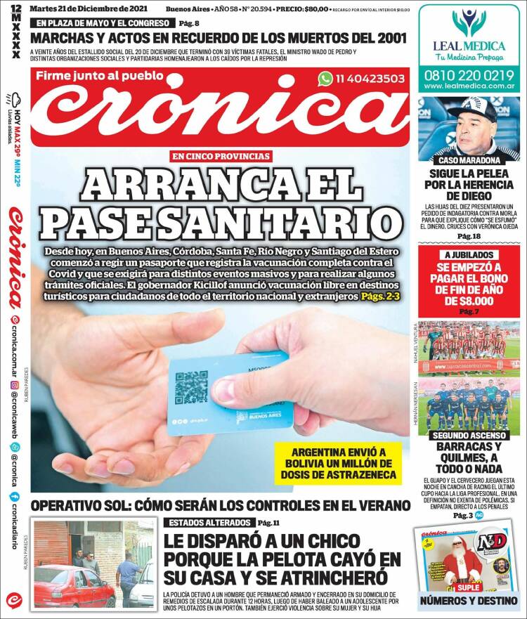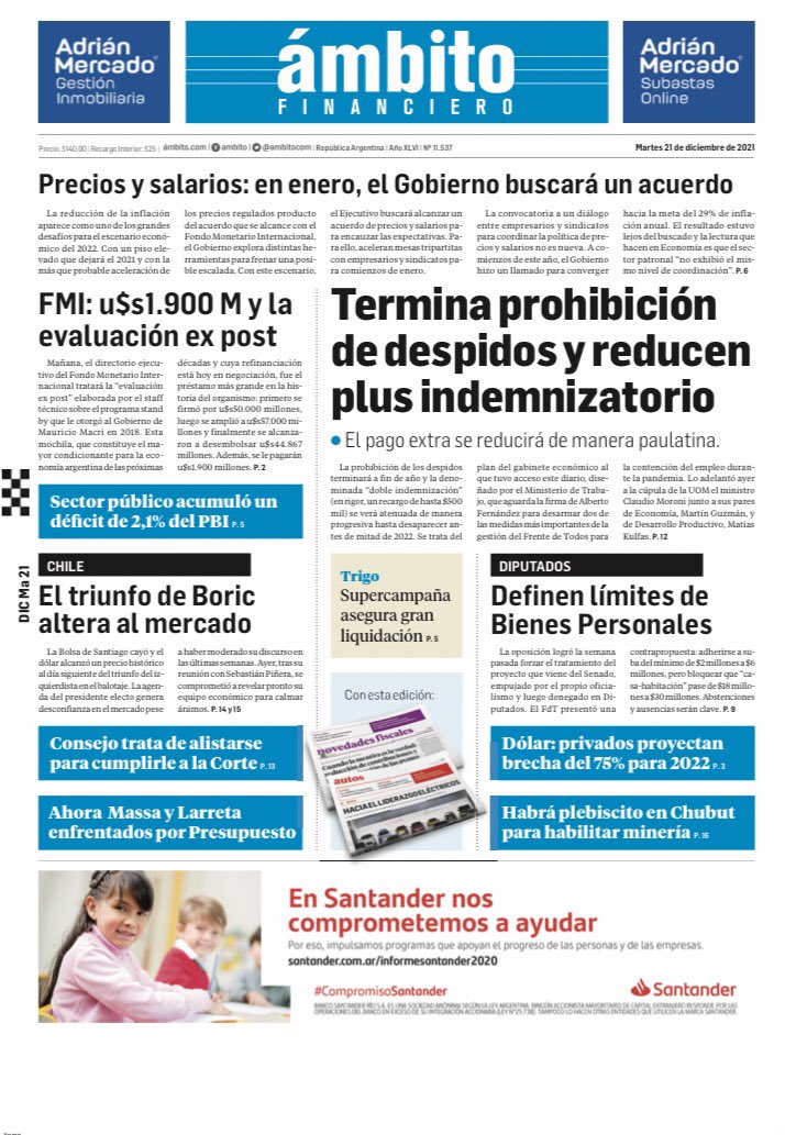 Portadas de los principales diarios nacionales, martes 21 de diciembre