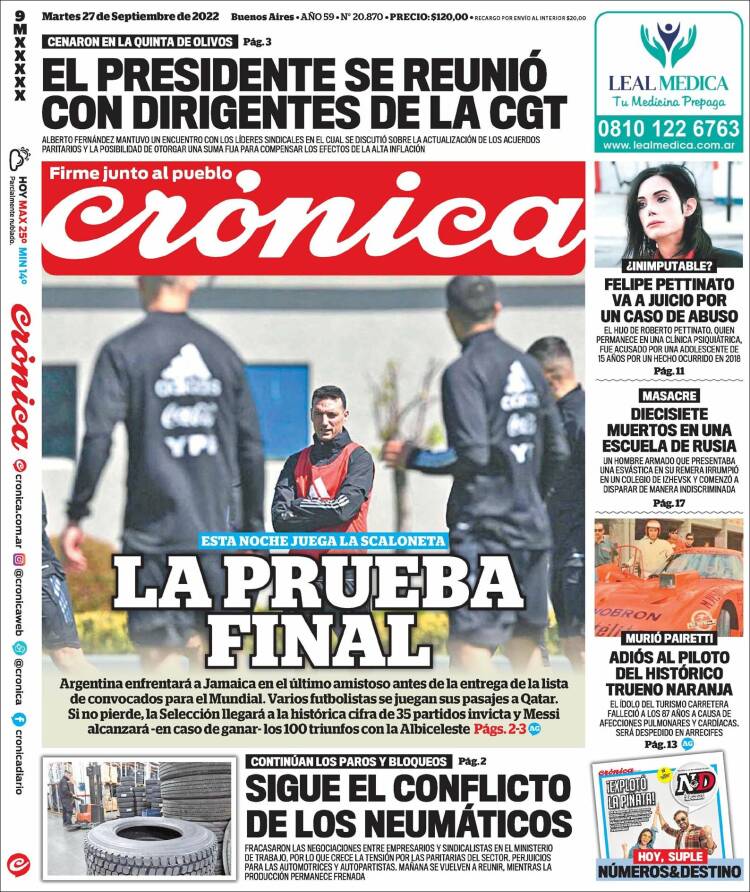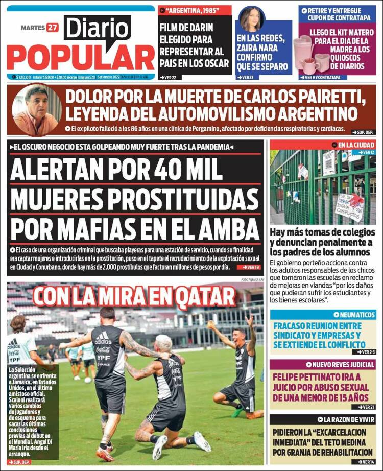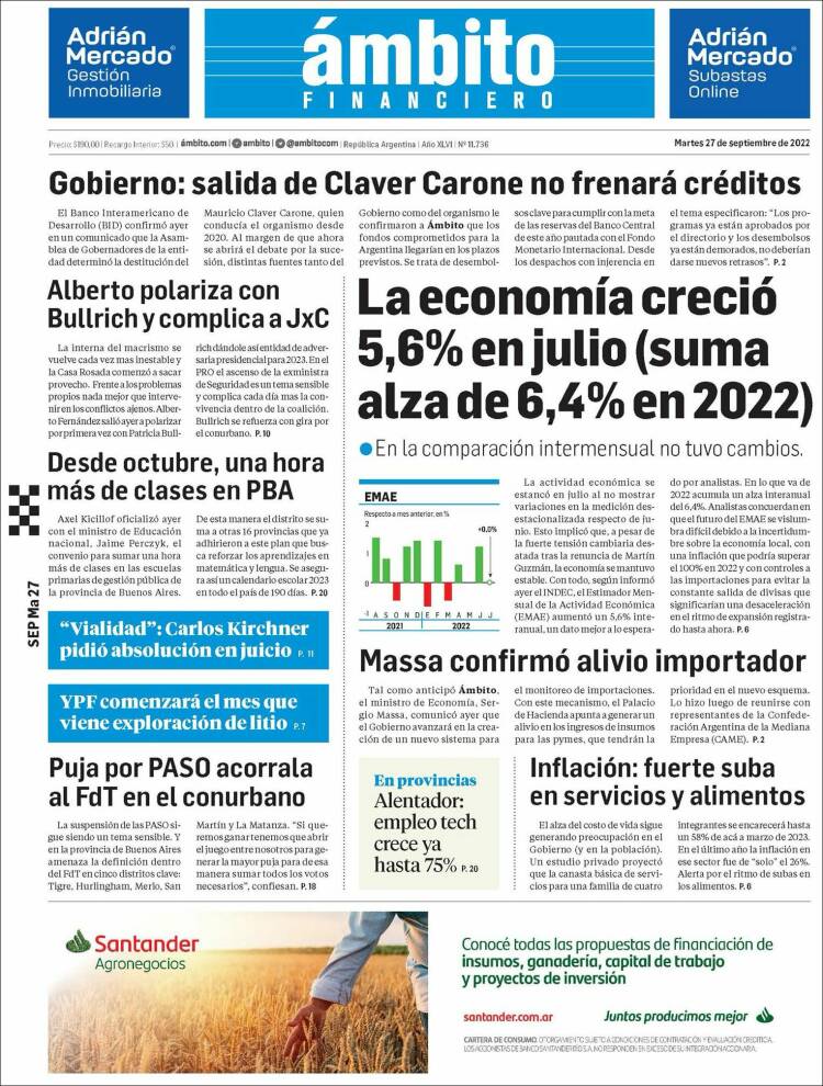 Portadas de los principales diarios nacionales | Martes 27 de septiembre