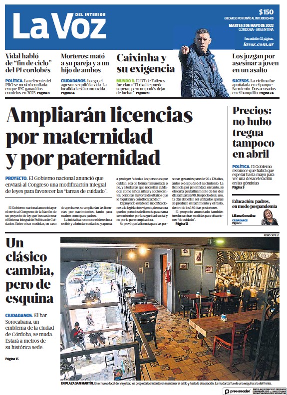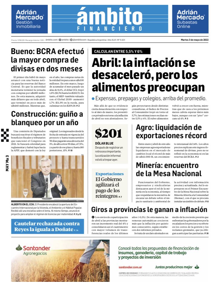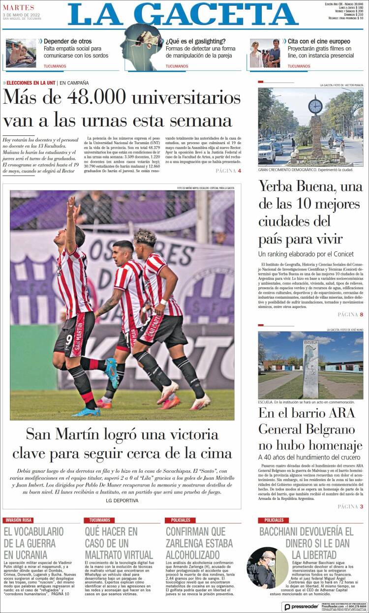 Leé las tapas de los principales diarios nacionales de este martes 3 de mayo