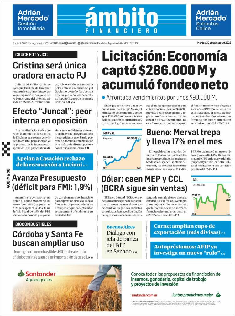Portadas de los principales diarios nacionales | Martes 30 de agosto