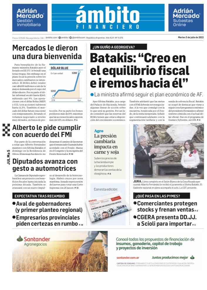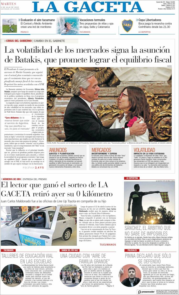 Las tapas de los diarios más importantes del país de este martes 5 de julio