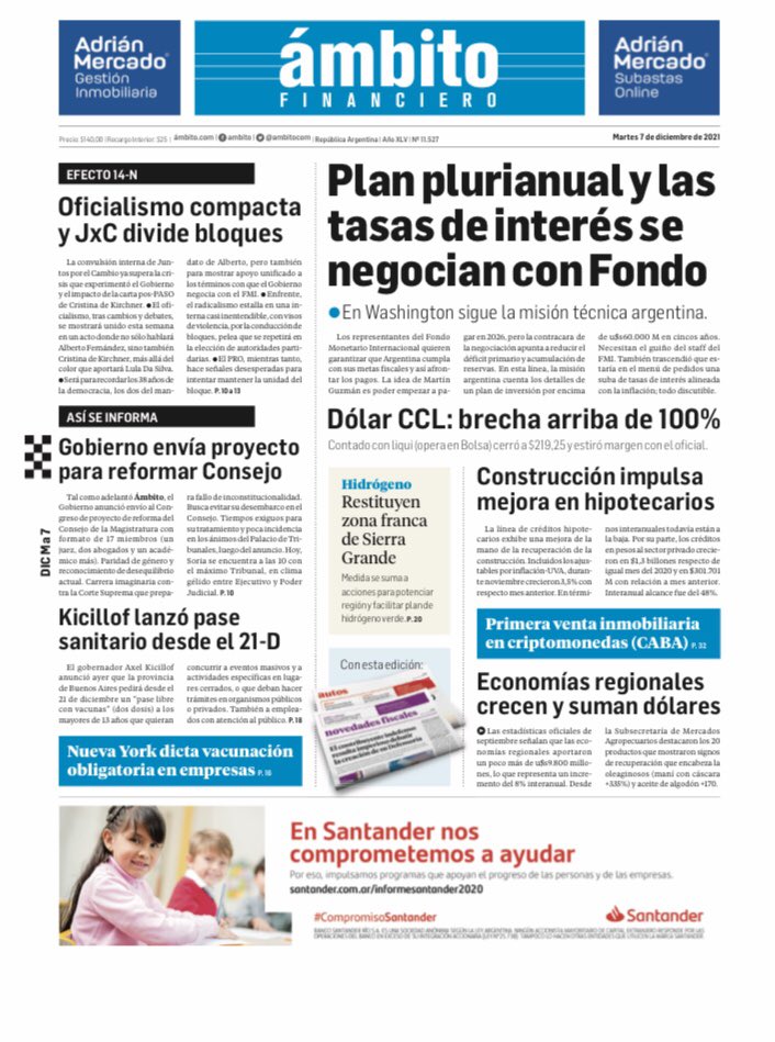 Portadas de los principales diarios nacionales, martes 7 de diciembre