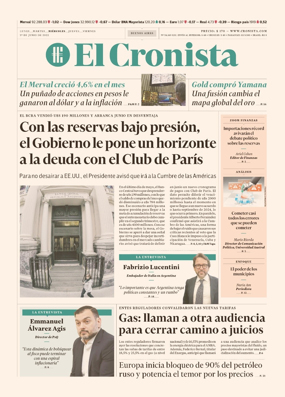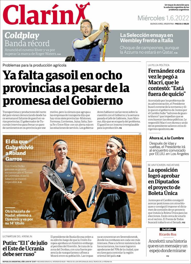 Leé las tapas de los principales diarios nacionales de este miércoles 1° de junio