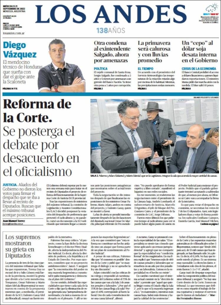 Portadas de los principales diarios nacionales | Miércoles 21 de septiembre