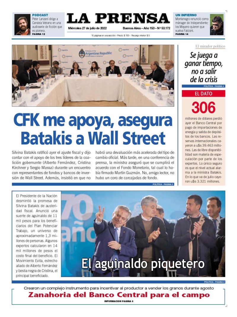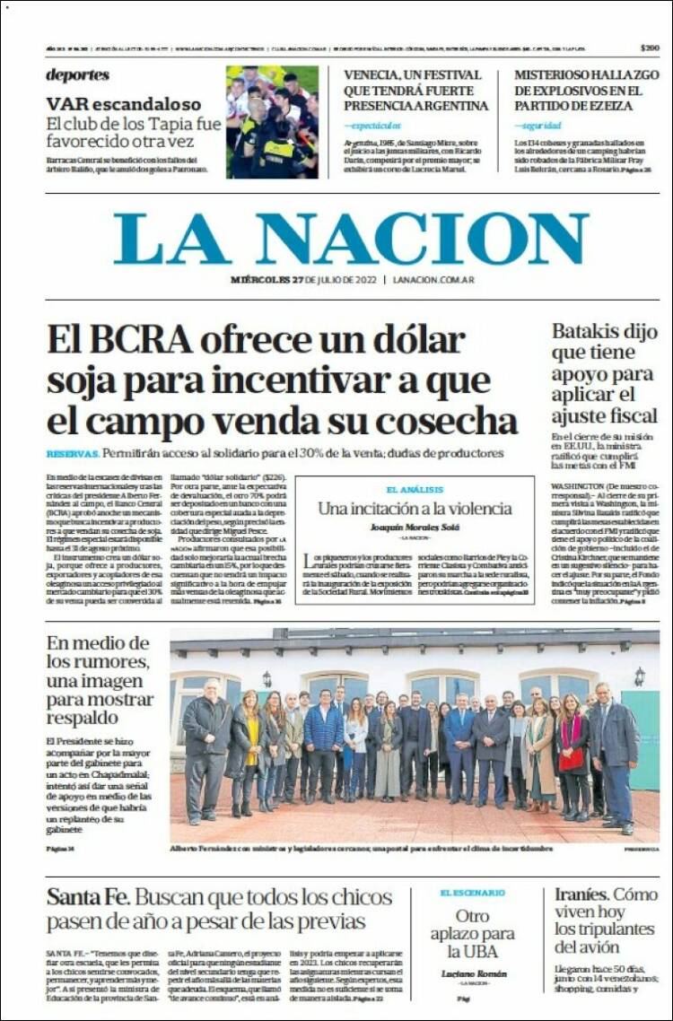 Las tapas de los diarios más importantes del país, de este miércoles 27 de julio