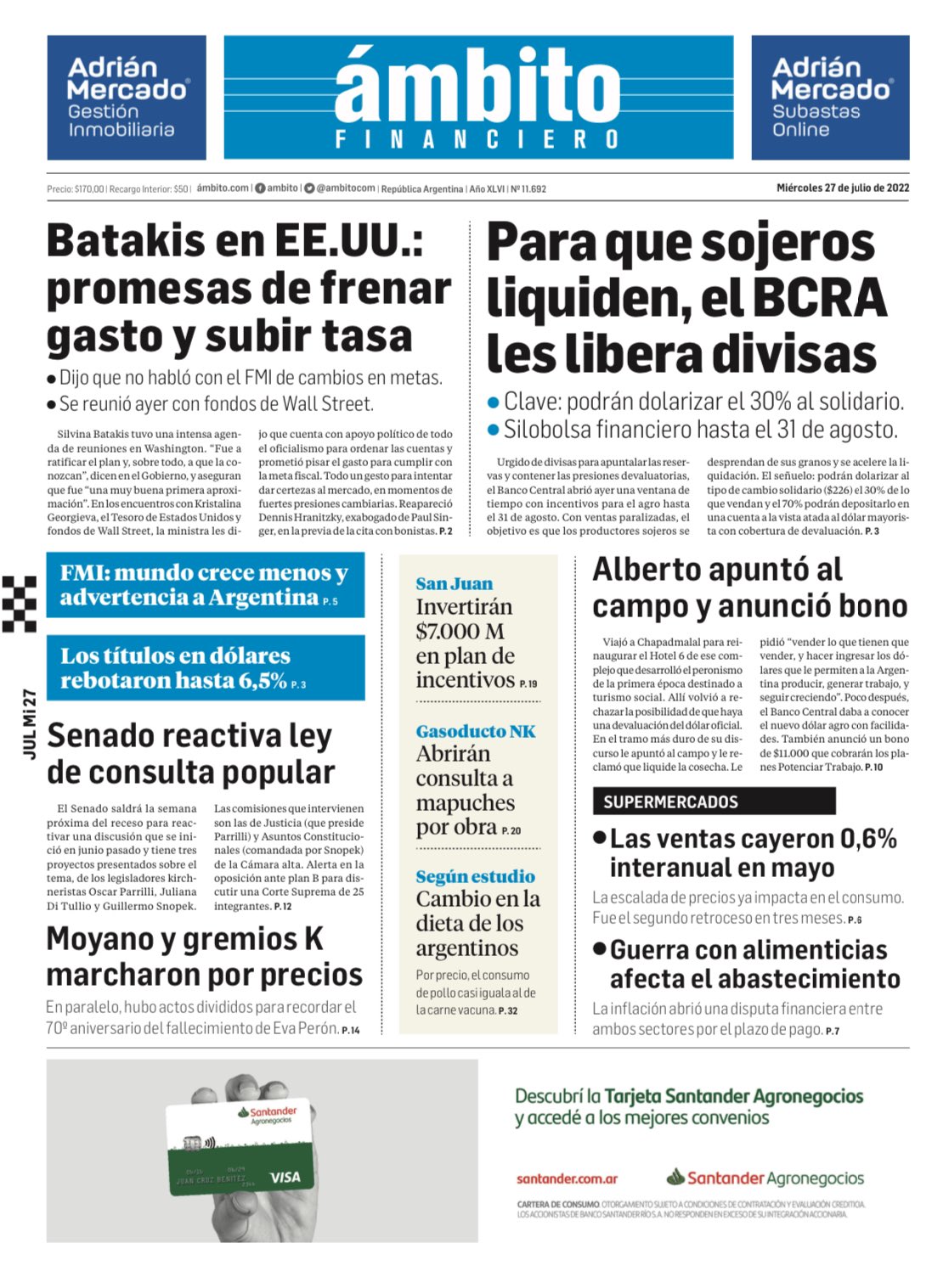 Portadas de los principales diarios nacionales | Miércoles 27 de julio