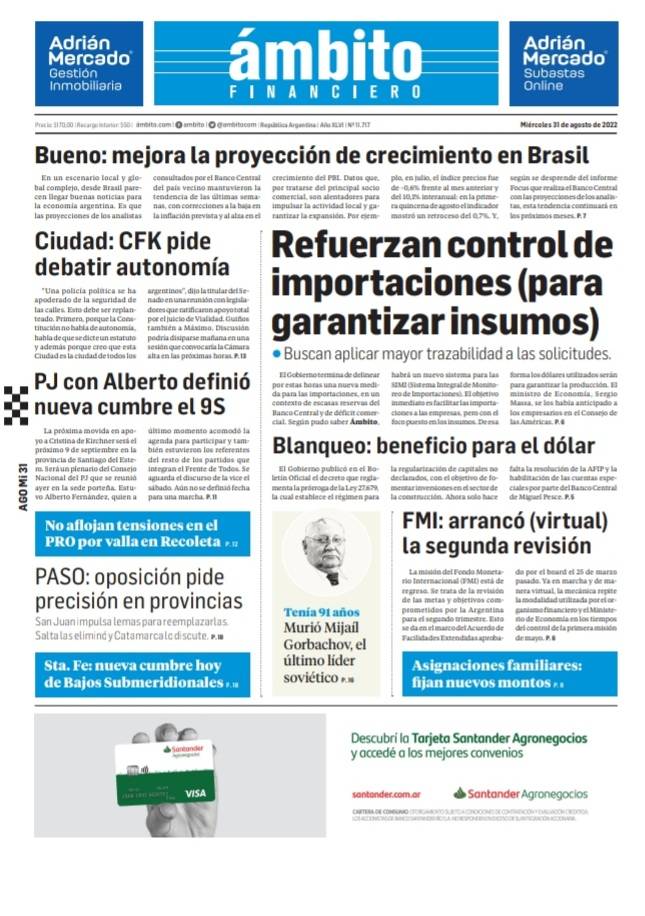 Portadas de los principales diarios nacionales | Miércoles 31 de agosto