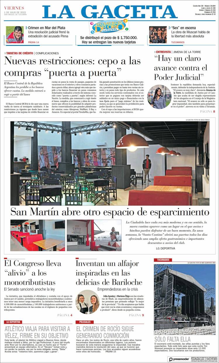 Las tapas de los diarios más importantes de este viernes 1| de julio