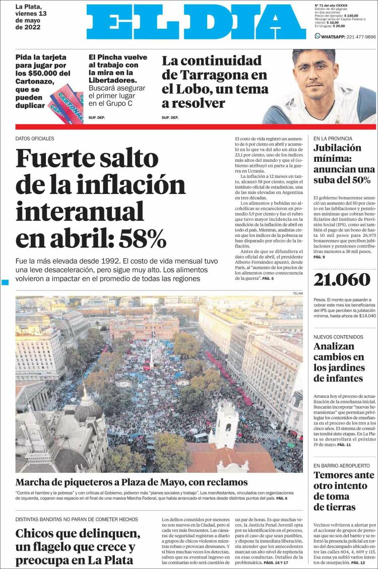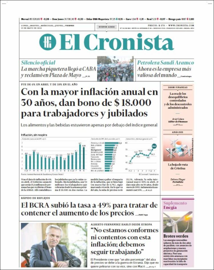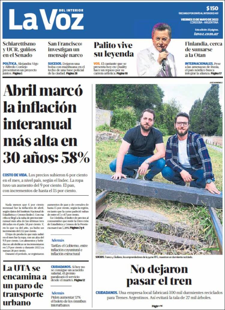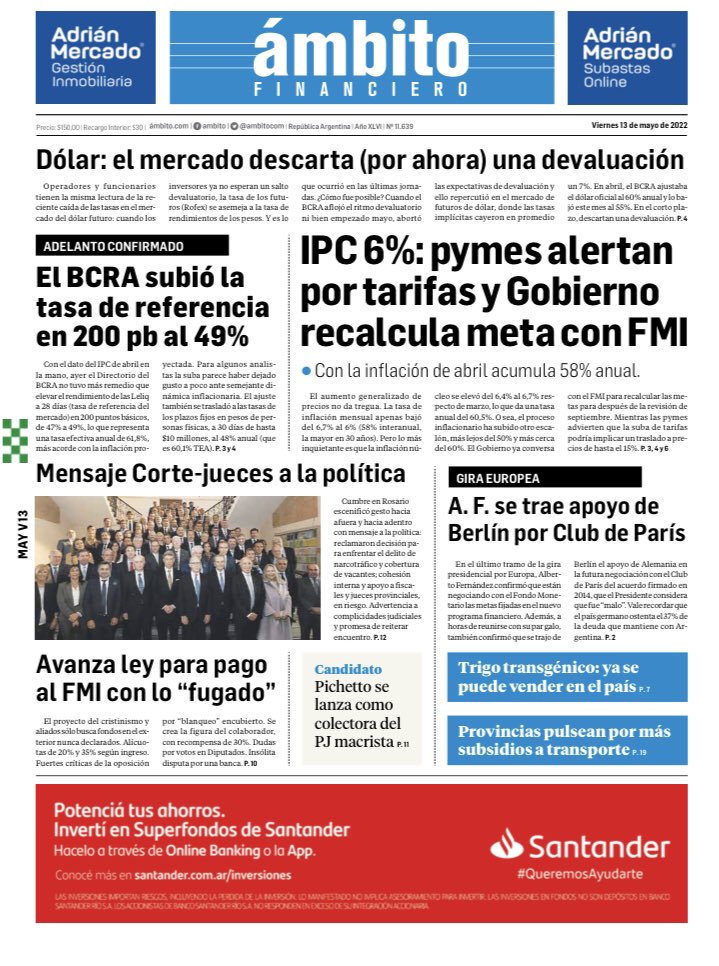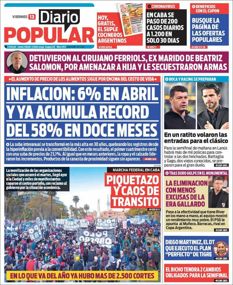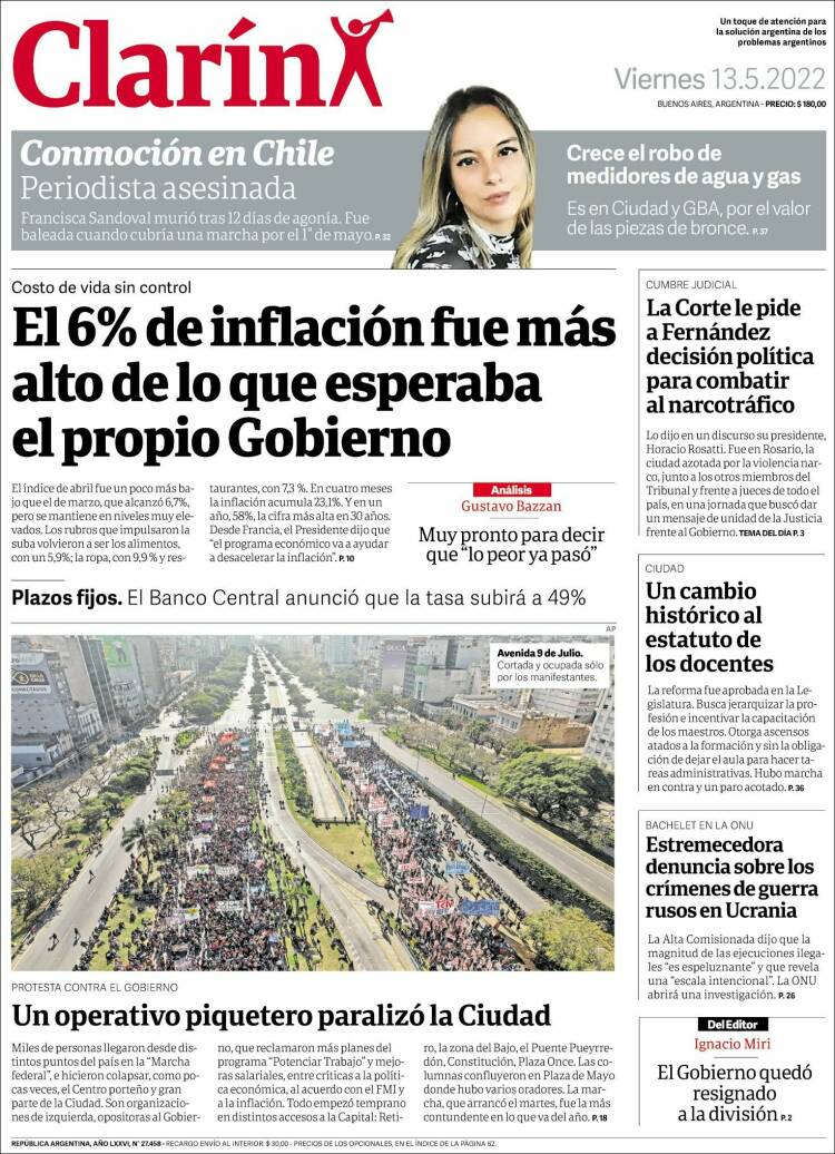 Leé las portadas de los principales diarios nacionales del viernes 13 de mayo