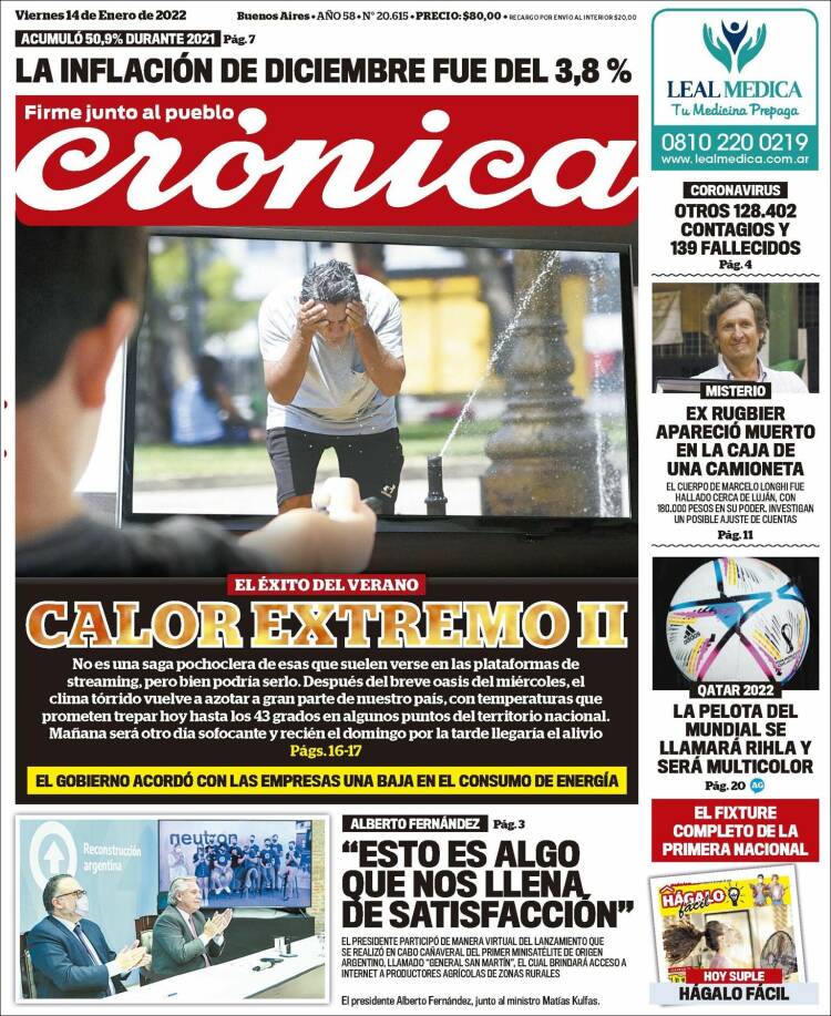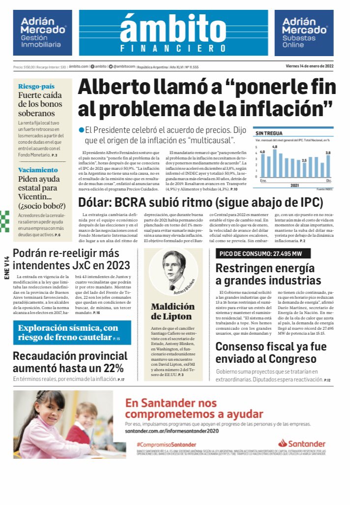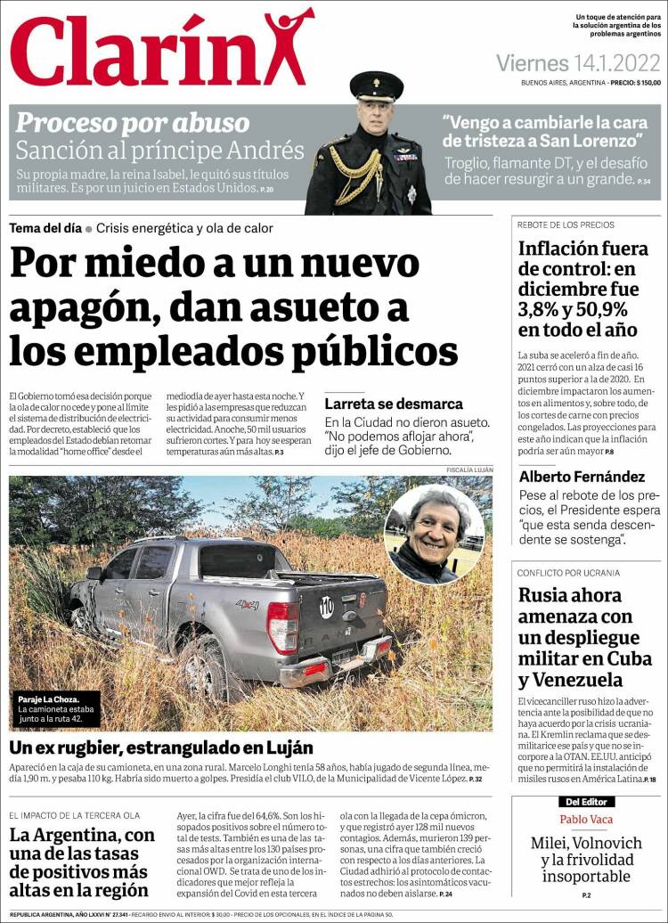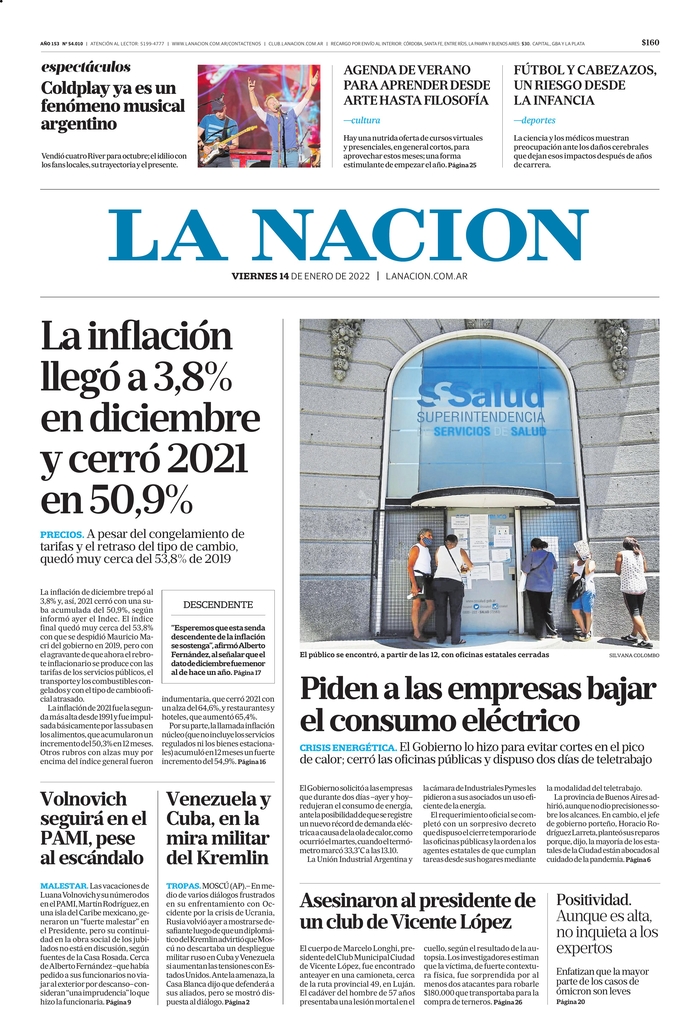 Portadas de los principales diarios nacionales – viernes 14 de enero