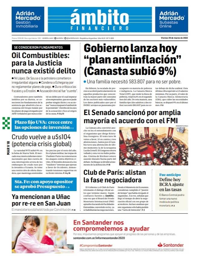 Portadas de los principales diarios nacionales | viernes 18 de marzo