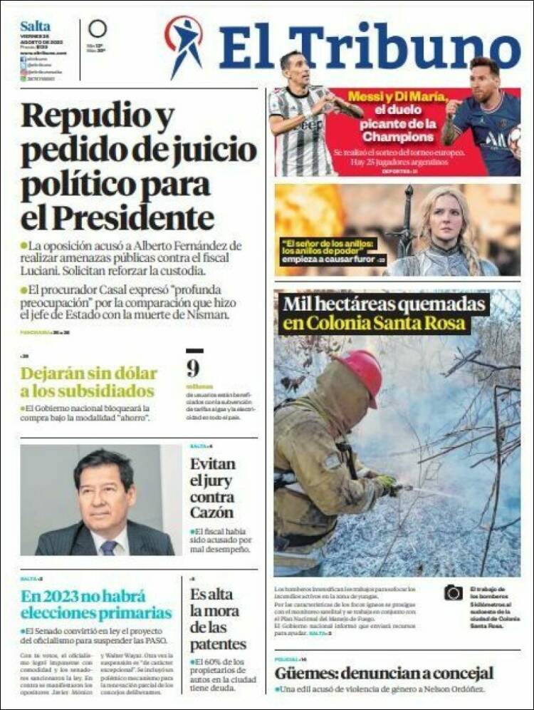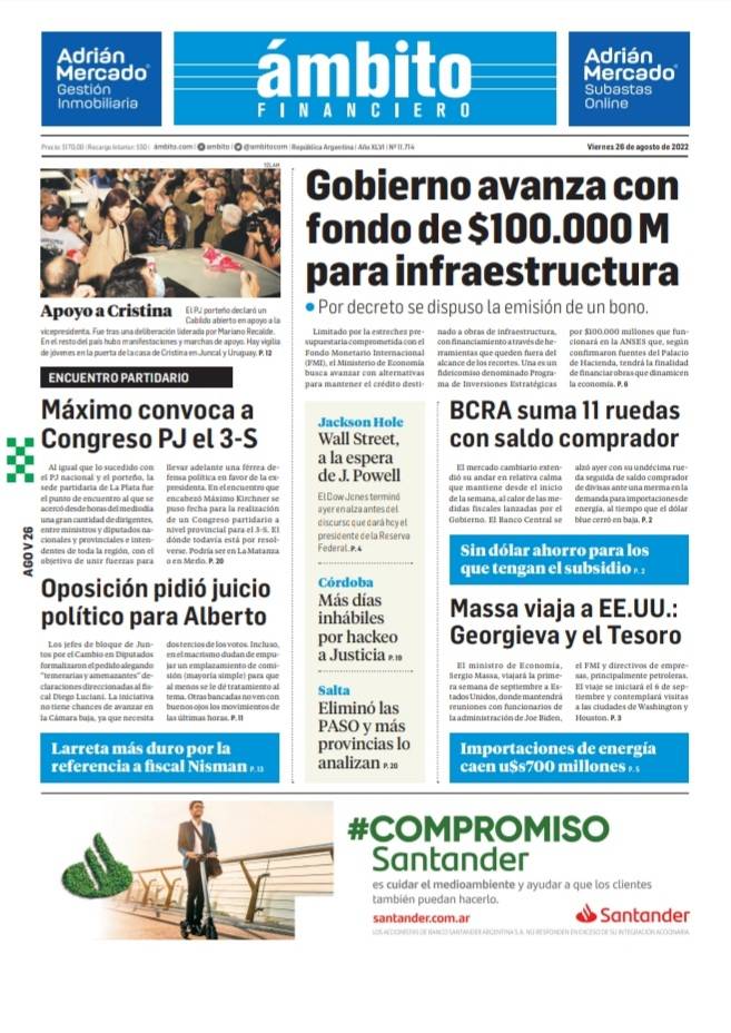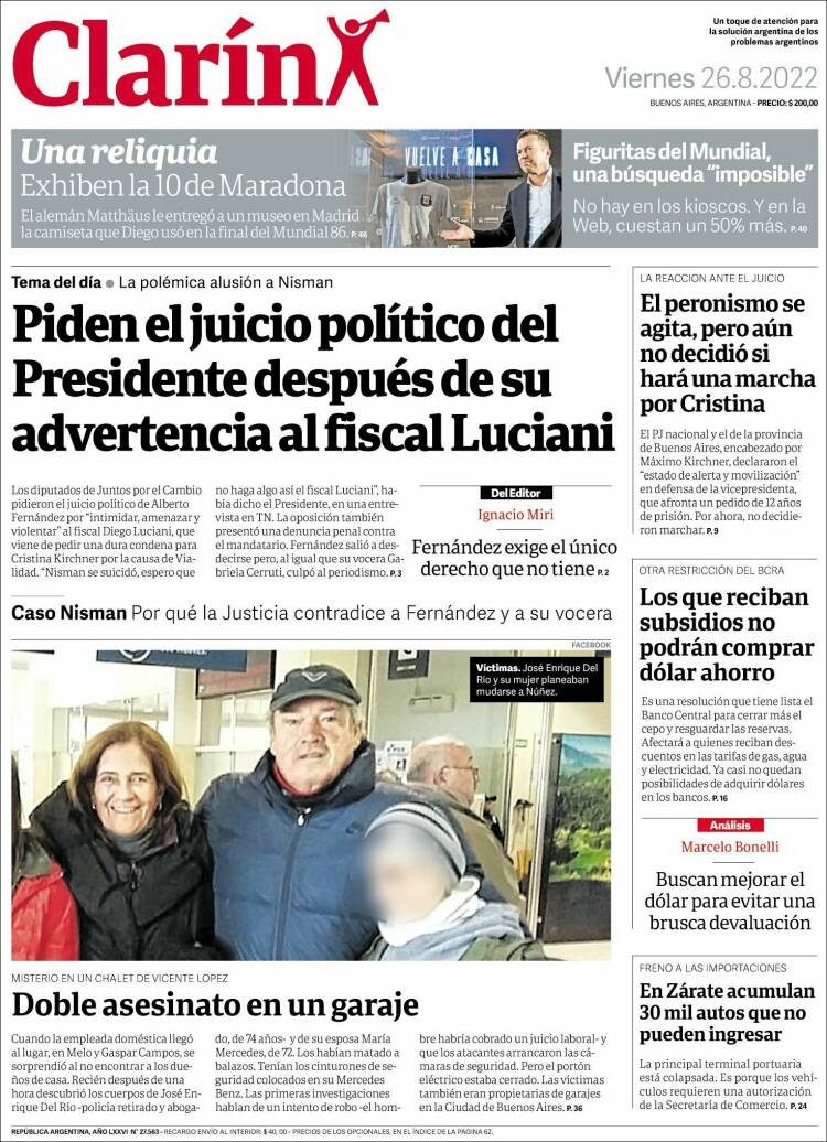 Portadas de los principales diarios nacionales | Viernes 26 de agosto