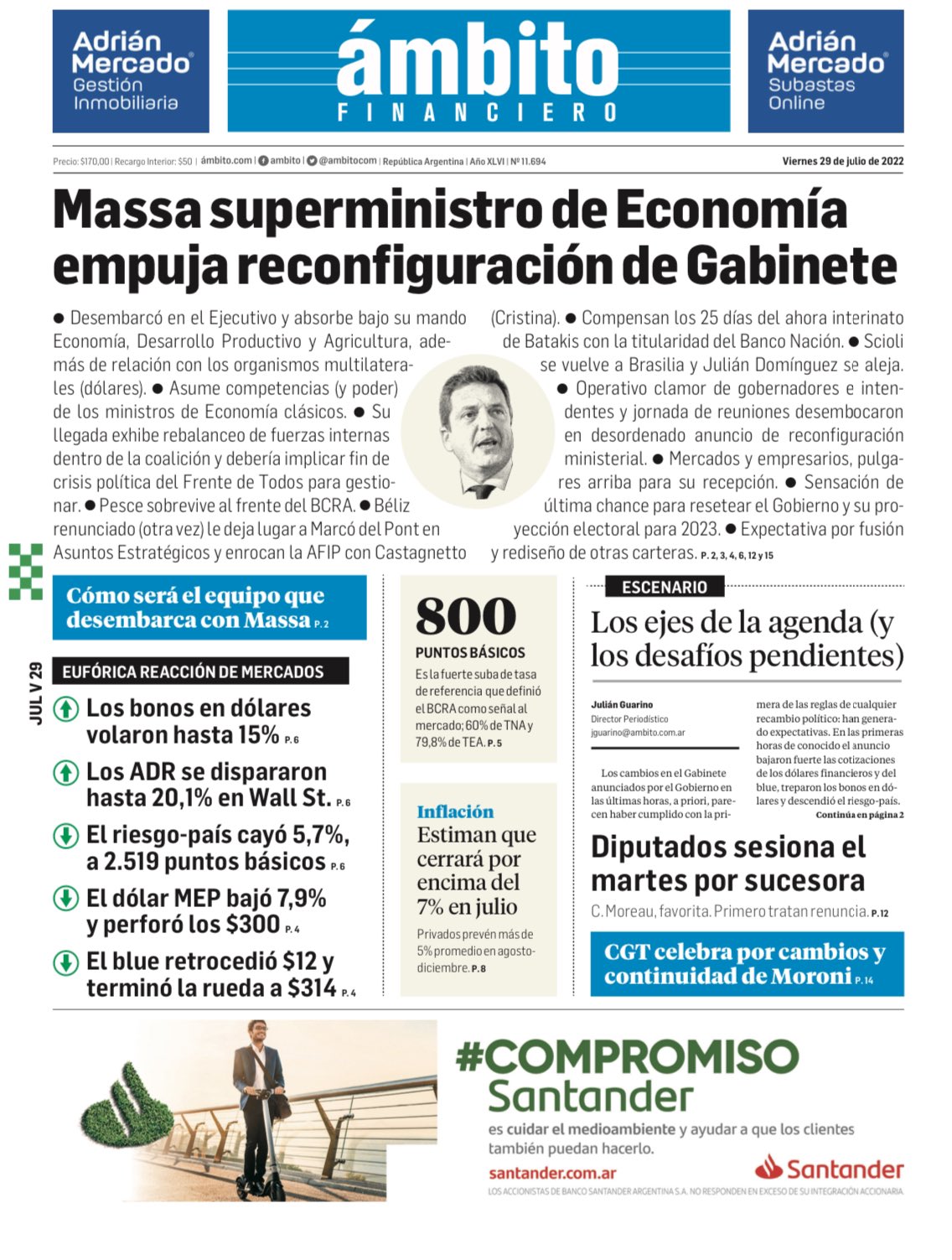 Portadas de los principales diarios nacionales | Viernes 29 de julio