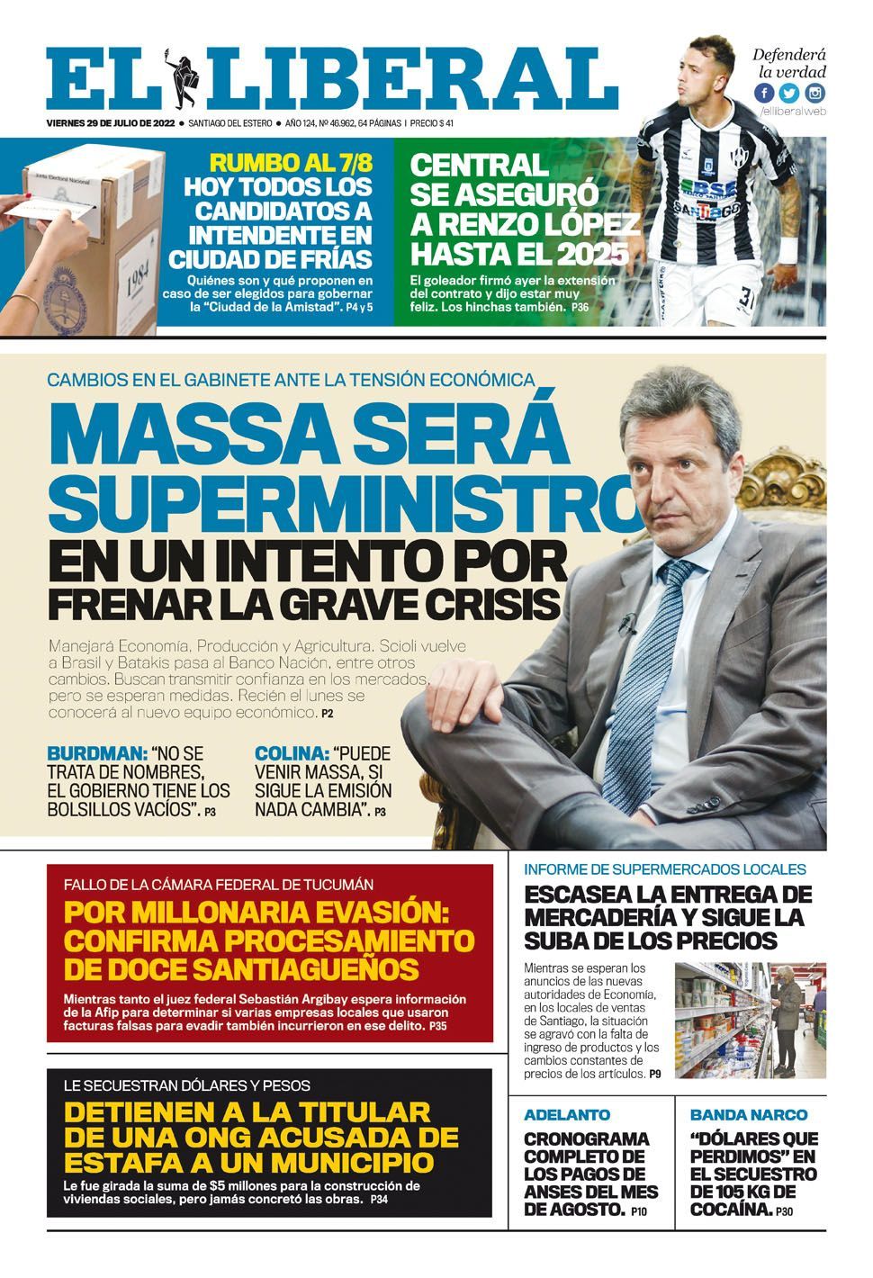 #BuenViernes Las tapas de los diarios más importantes de este viernes 29 de julio