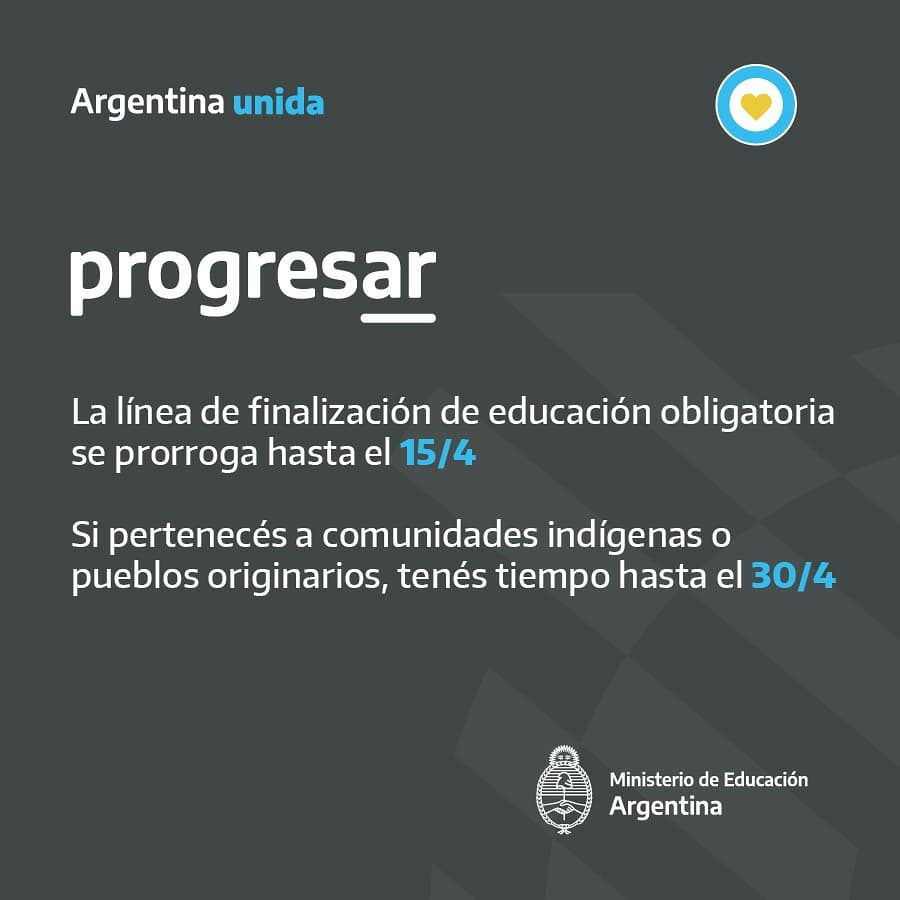 El Ministerio de Educación de la Nación, a través de la resolución N° 138/2020 publicada hoy en el Boletín Oficial, informó la prórroga en la inscripción de las becas Progresar para quienes desean finalizar la Educación Obligatoria -primaria y secundaria- y para miembros de comunidades indígenas y pueblos originarios.