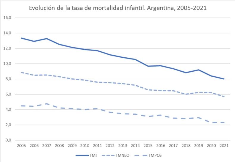 La Tasa de Mortalidad Infantil (TMI) se calcula como el número de muertes de niños menores de un año por cada 1.000 nacidos vivos en un período determinado, según el Instituto Nacional de Estadística y Censos (INDEC). La Mortalidad Neonatal refleja los fallecimientos en los primeros 28 días de vida. Está íntimamente ligada a la atención médica (calidad de las neonatologías, tecnología y equipamiento, como el que hoy falta en el Garrahan). La Mortalidad Post-neonatal ocurre desde los 28 días hasta el año. Está vinculada al entorno social (nutrición, agua potable, vivienda y la capacidad del bolsillo de los padres para sostener la crianza).