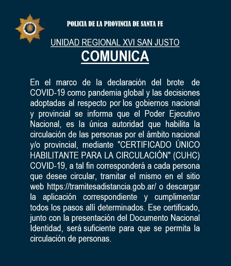 A continuación damos a conocer un comunicado sobre el certificado único habilitante para la circulación. La autoridad para otorgarlo es el Poder Ejecutivo Nacional y el interesado debe ingresar a la página web del organismo (trámites a distancia) -ver galería de fotos-