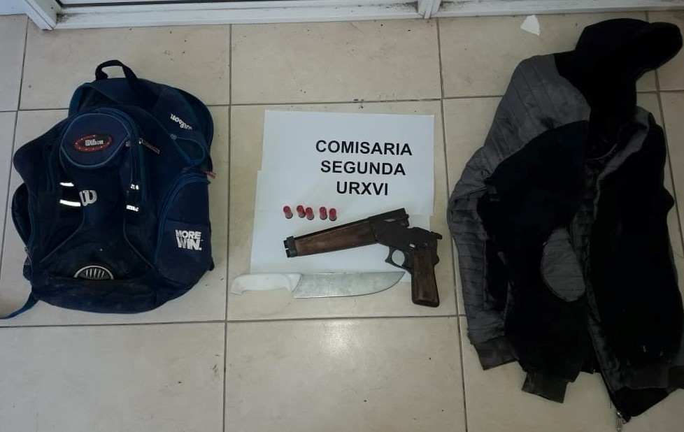 Habiendo personal policial de Comisaría 2° U.R. XVI llevado a cabo orden de allanamiento en un domicilio de calle 24 bis s/n Barrio Mosser, donde su morador se encuentra imputado y DETENIDO por otro hecho (ROBO CALIFICADO), la misma arrojó también resultado positivo con relación a elementos del presente legajo investigativo, procediéndose también al secuestro de una mochila azul marca WILSON, una mochila plástica blanca y una campera gris con negro.