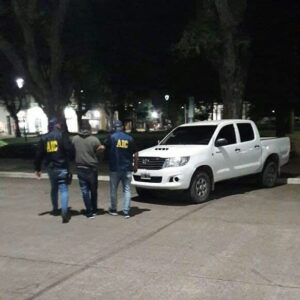 Finalmente, el 15 de Septiembre pasado, personal policial del Puesto Caminero de Rosario del Tala (provincia de Entre Ríos), detuvo en un control vehicular a una camioneta Toyota Hilux modelo 2018 conducida por R.M., quien presentaba domicilio en la localidad de Ballesteros Sud (provincia de Córdoba).- Una vez avisadas las autoridades judiciales provinciales, personal de AIC SAN JUSTO se comisionó el Jueves 16 pasado a Entre Ríos para buscar al detenido y ponerlo a disposición de la Dra. MARIA LAURA URQUIZA, de la Fiscalía Especial de Delitos Complejos, a la vez que la camioneta fue secuestrada por orden de la Jueza de Santa Fe.-