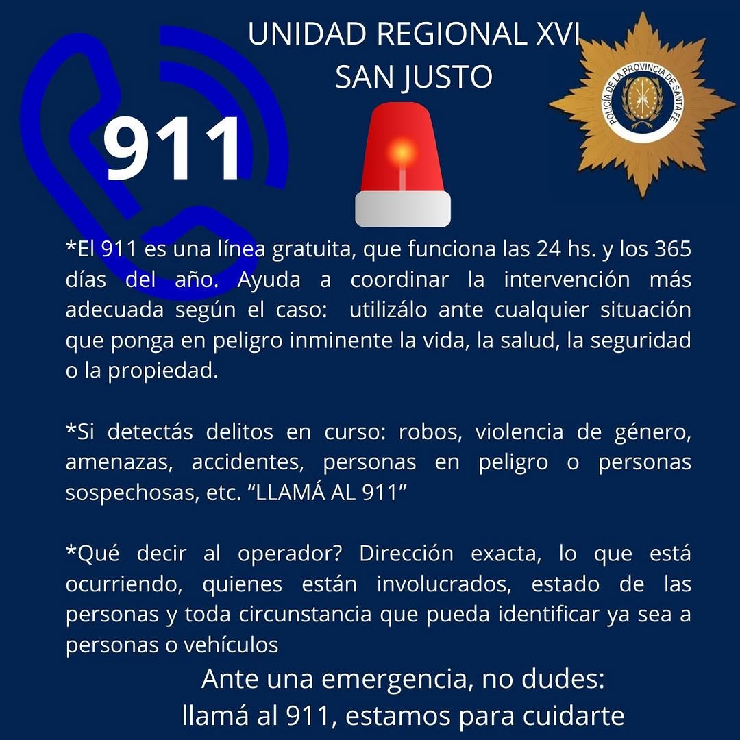 La Unidad Regional XVI San Justo recuerda que el 911 es una línea gratuita que funciona las 24 horas, los 365 días del año.