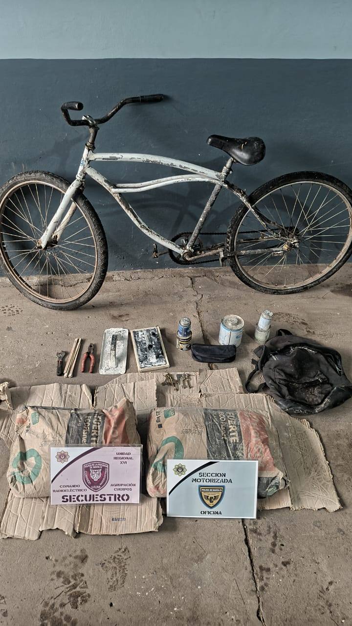 Al momento de su identificación, el individuo manifestó ser un hombre de 23 años, con domicilio en A. Belotti 2700, quien se desplazaba en una bicicleta tipo playera, rodado 26, y transportaba además dos bolsas de cemento marca Holcim de 25 kg, envueltas en una lona negra, y una mochila negra que contenía diversas herramientas y elementos de albañilería.