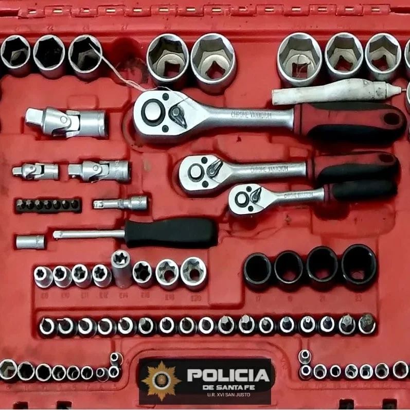 Minutos después, se recibió un llamado telefónico por parte de un individuo mayor de edad, el cual manifestó que momentos antes habría ido a almorzar y al regresar a su taller mecánico, notó la faltante de cables de distintas medidas, una amoladora, una caja de tubos color rojo entre otras herramientas. Ya en dependencia policial, dicho varón reconoce los elementos secuestrados como de su propiedad. Causa caratulada “HURTO” con intervención Fiscalía a cargo del Dr Persello Guillermo.