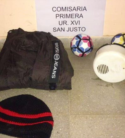 A posterior se obtuvo de esta entidad deportiva, un registro fílmico del ilícito donde se puede apreciar que el autor del hecho es un conocido masculino de esta ciudad. En virtud de lo expuesto personal de Comisaría 1° U.R. XVI solicita órdenes de allanamiento para dos domicilios, el del indicado como autor y el de su novia, medidas judiciales que se proceden a dar cumplimiento en la fecha en forma simultánea, siendo los uniformados en el primero atendidos por la progenitora, de 46 años de edad, arrojando resultado POSITIVO en razón de procederse al secuestro de una campera inflable con letras blancas, con capucha, un gorro de lana negro, un aromatizador color blanco y dos pelotas de cuero Nº 1.