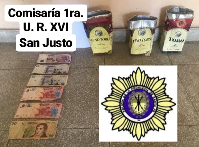 Esto motivó que el mismo sea individualizado, contando con 32 años de edad, y previo cacheo, entre sus ropas se procedió al secuestro del dinero sustraído, y tras una requisa domiciliaria al hallazgo de las cajas de vino sin su contenido, siendo aprehendido y puesto a disposición del Ministerio Público de la Acusación.