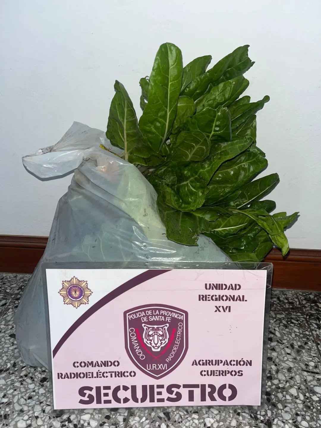 El personal procedió a identificar al ciudadano, de 19 años, domiciliado en calle J. Milessi N°2000, quien llevaba consigo plantas de acelga dentro de una bolsa. Se procedió a la aprehensión y al secuestro de los elementos, trasladándolo posteriormente a sede policial para las actuaciones de rigor.
