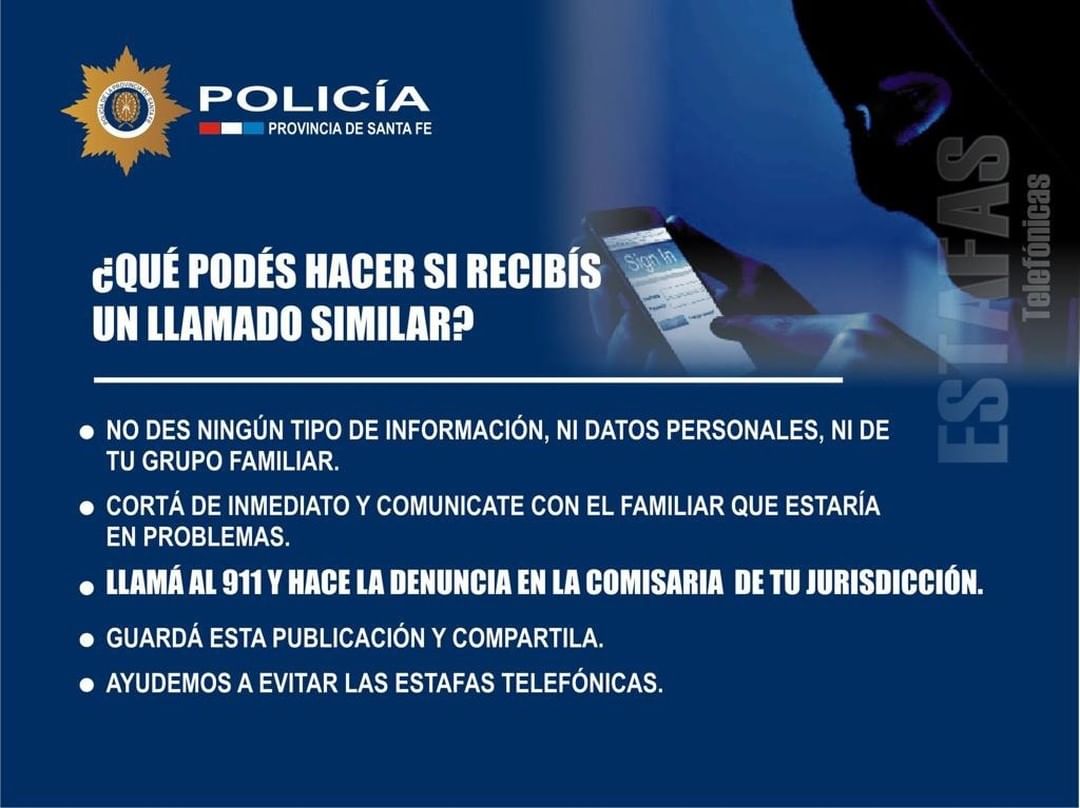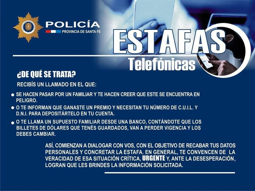 La Policía de la provincia de Santa Fe, recuerda las recomendaciones para evitar ser víctimas de estafas telefónicas – ver placas en galería de imágenes.
