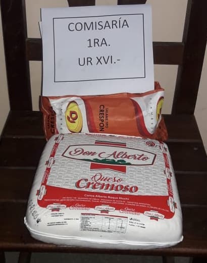 En el día de la fecha personal de Comisaría 1º U.R. XVI juntamente con personal de Grupo de Apoyo Táctico (GAT), siendo las 03.20 hs. procedieron a la aprehensión de un masculino de 29 años de edad, oriundo de esta ciudad, secuestrándosele (01) horma de queso cremoso y (1/2) horma de salame Milán.