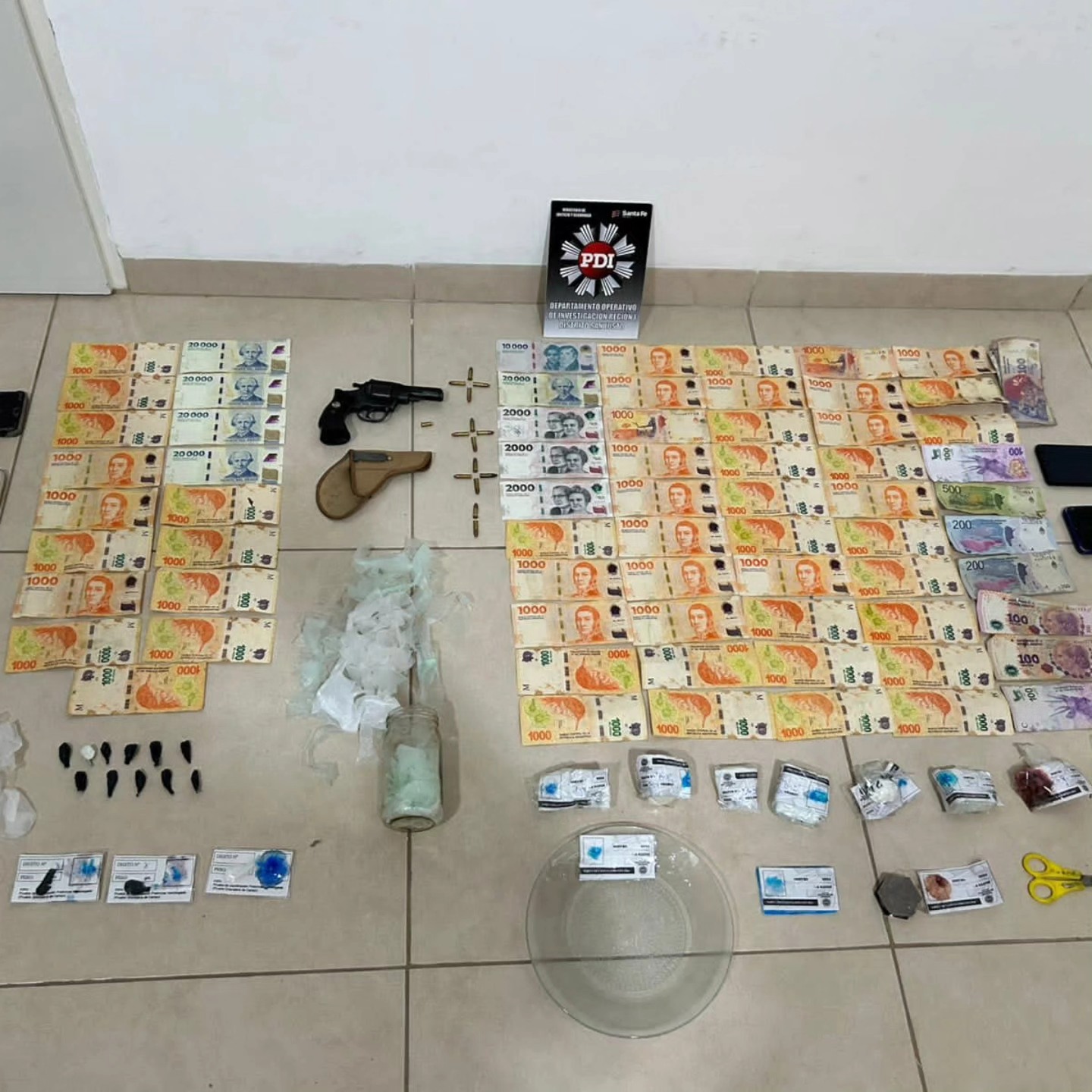Reunidos los elementos probatorios suficientes, la Fiscalía solicitó órdenes de allanamiento, las que fueron concedidas por el juez Nicolás Falkermberg. Personal de PDI, junto a grupos tácticos de Irrupción de la Policía de Santa Fe, realizaron tres allanamientos simultáneos, donde detuvieron a dos personas y secuestraron 211.1 gramos de cocaína, 3.1 gramos de marihuana, 9 plantas de cannabis, un arma de fuego, 13 cartuchos, una balanza de precisión, 7 teléfonos celulares, $168.900 dinero en efectivo, y elementos de fraccionamiento, como recortes de nylon, bandas elásticas, picador, plato y tarjeta con reactivo positivo.