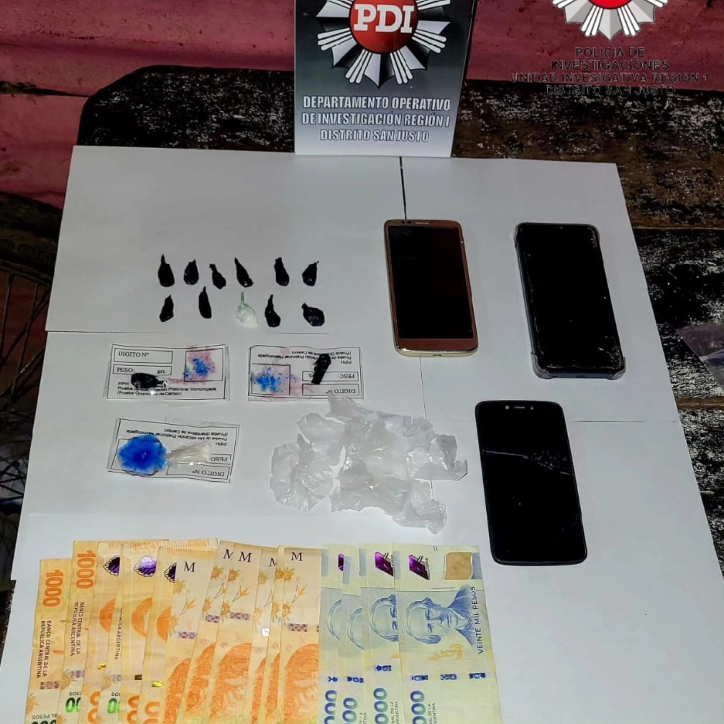 La Policía de Investigaciones (PDI), dependiente del Ministerio de Justicia y Seguridad, realizó el pasado jueves tres allanamientos donde detuvo a dos personas, una mujer identificada como A. M. R. de 35 años, y un hombre de nombre M. A. R. de 74 años, por tenencia, fraccionamiento, distribución y comercialización de estupefacientes.