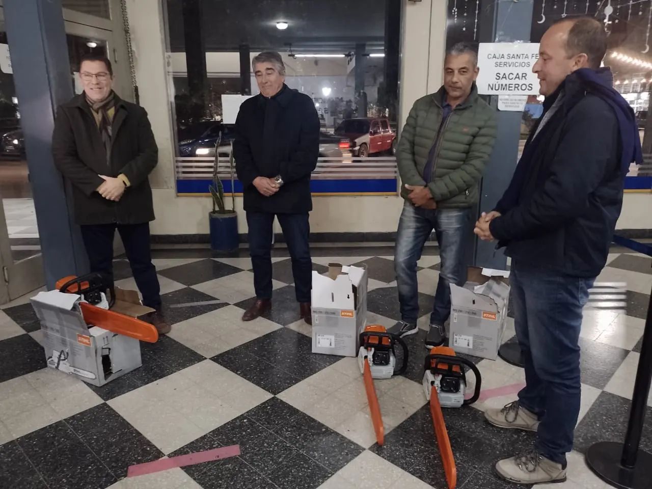 El Diputado Fabián Bastia junto a Senador @rodrigoborla hicieron entrega al Intendente @nicolascuestaok de herramientas para mantenimiento y poda del arbolado público.