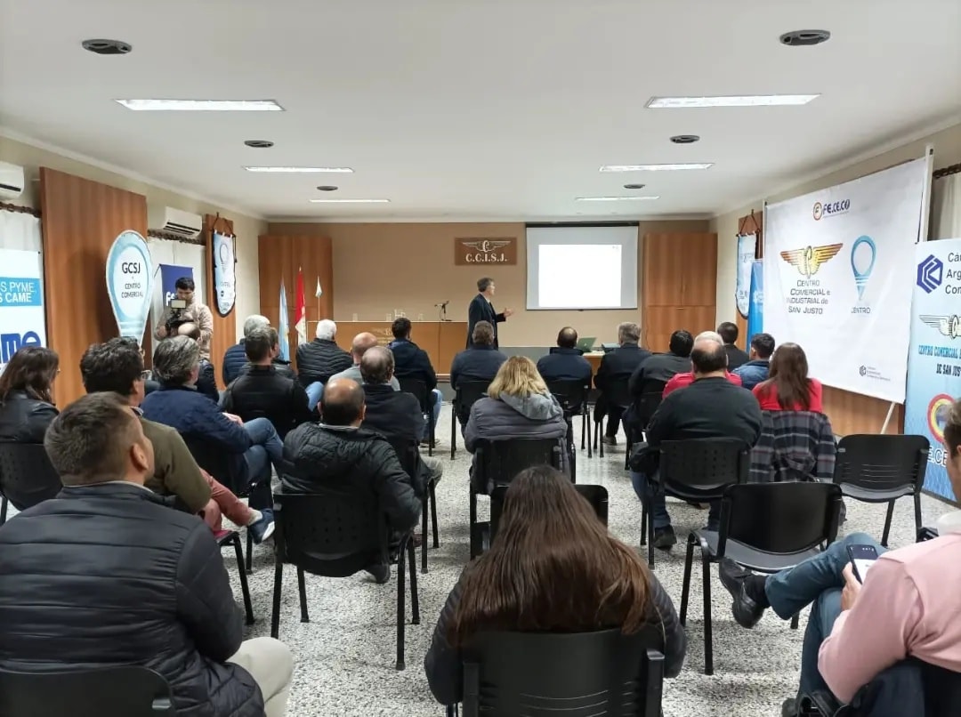 Compartimos Charla Abierta sobre la Coyuntura Económica Nacional y Provincial en instalaciones del Centro Comercial e Industrial de San Justo a cargo del Profesor y Economista Pablo Olivares.