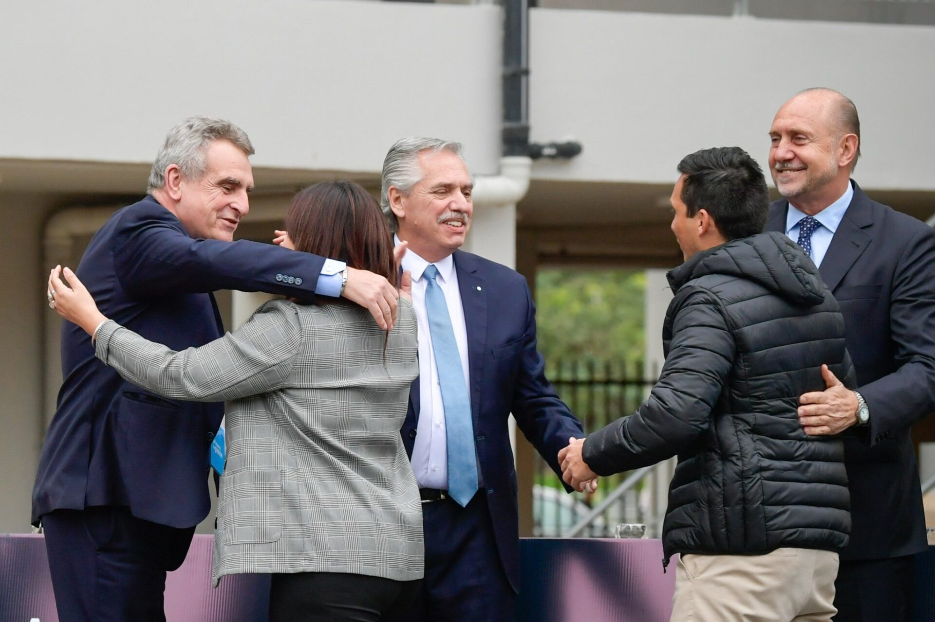 El presidente Alberto Fernández encabezó esta tarde, junto al gobernador Omar Perotti, la entrega de 93 viviendas del desarrollo urbanístico Estación Cambios del Plan Procrear I en la ciudad de Santa Fe, que requirió una inversión de 1.344 millones de pesos y con las que se alcanzaron las 115.000 soluciones habitacionales otorgadas desde el inicio de la gestión.