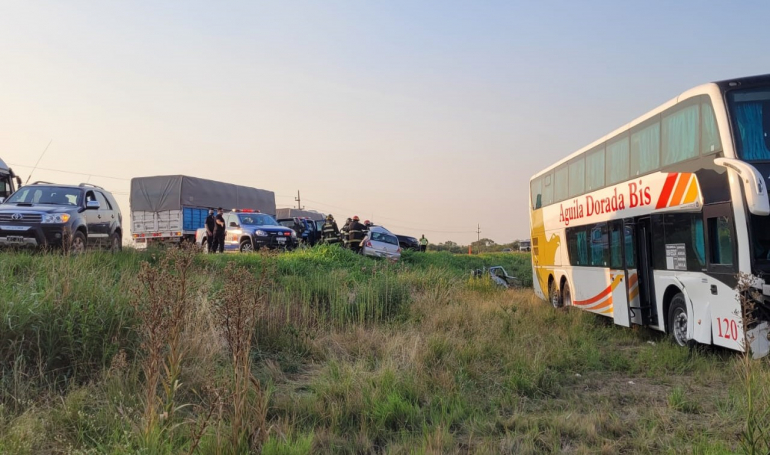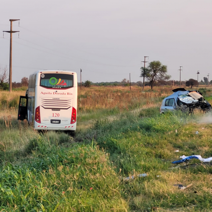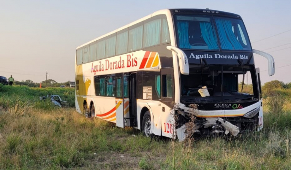 Allí, por causas que se tratan de establecer, el automóvil Renault Clio en el que circulaban una mujer y dos hombres, se cruzó de carril e impactó contra un ómnibus de la empresa “Águila Dorada Bis” que circulaba hacia el Norte, conducido por Iván G.