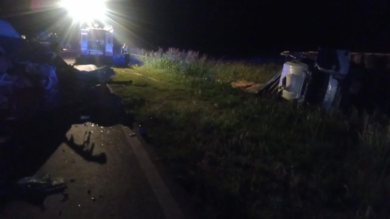 En sentido contrario, hacia el Sur, avanzaba el camión Iveco cargado con cereal, el que luego de chocar despistó y quedó volcado fuera de la calzada, El chofer fue trasladado al Hospital, e identificado como Milton Alexis Miranda, de la localidad de Quitilipi Chaco.