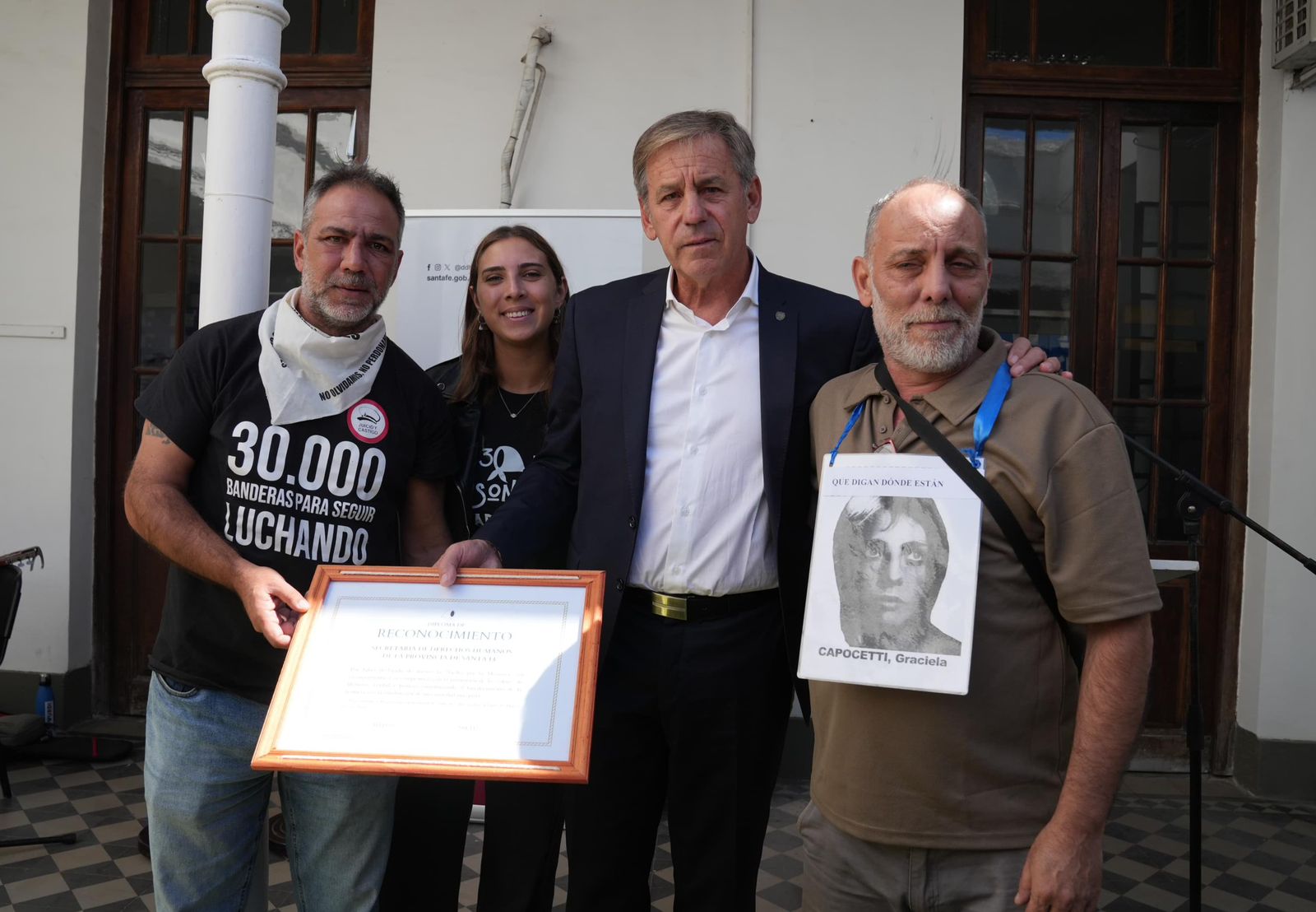 En representación de familiares de detenidos y desaparecidos por razones políticas de Santa Fe e integrante del Foro contra la Impunidad y por la Justicia, Hugo Kofman; referentes de organismos de Derechos Humanos; además de otras autoridades nacionales, provinciales y locales; y representantes de instituciones públicas santafesinas.