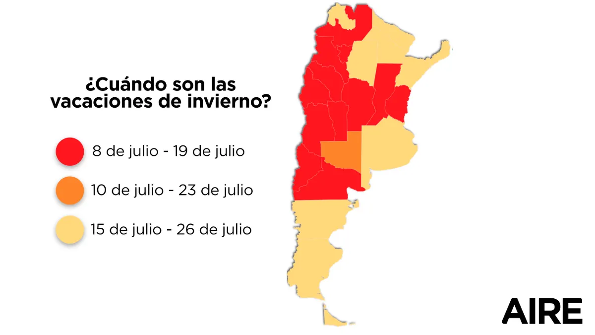 El Gobierno confirmó las fechas de inicio y finalización de las vacaciones de invierno para las distintas provincias del país, las cuales se distribuirán de la siguiente manera: