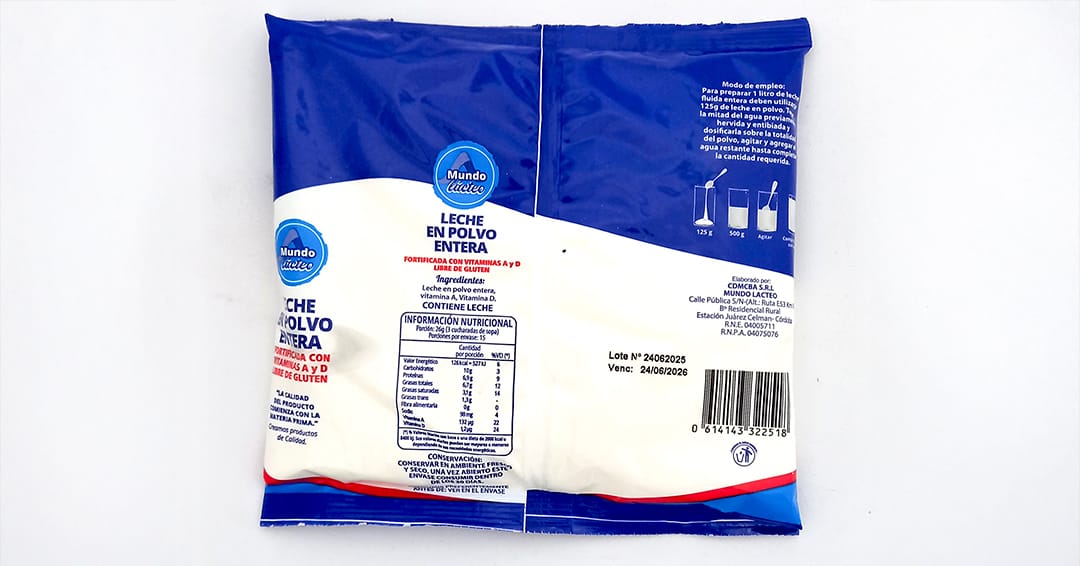 El Ministerio de Salud de la Provincia, a través de la Agencia Santafesina de Seguridad Alimentaria (Assal), prohibió en todo el territorio de la provincia de Santa Fe la tenencia, el transporte, la comercialización y exposición, de la leche en polvo entera fortificada con vitamina A y D Libre de Gluten de la marca Mundo Lácteo, elaborada por el Registro Nacional de Establecimiento Nº 2104-005711, con Registro Nacional de Producto Alimenticio Nº 04-075076, Razón Social CDMCBA SRL.