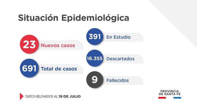 La provincia de Santa Fe registró este domingo 23 nuevos casos de coronavirus.