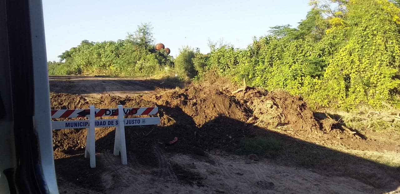 Las dos localidades colocaron montículos de tierra en el medio de los caminos de ingreso que conectan con la Ruta. También Llambi Campbell se suma bloqueando el acceso a la localidad.