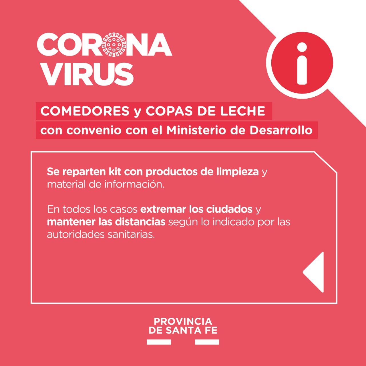 Información importante sobre comedores y copas de leche que tengan convenio con el Ministerio de Desarrollo Social. Los mismos seguirán funcionando, priorizando que la actividad sea realizada por personas jóvenes, que no formen parte de la población en situación de riesgo.