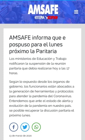 La convocatoria llegó ayer luego de la segunda semana de paro por 48 horas con movilizaciones de Amsafé y Sadop en rechazo a la propuesta salarial de un 10 por ciento de aumento en distintos rangos y cargos, lo que implicaría unos 3 mil pesos de aumento de bolsillo para el cargo testigo (docente sin antigüedad).