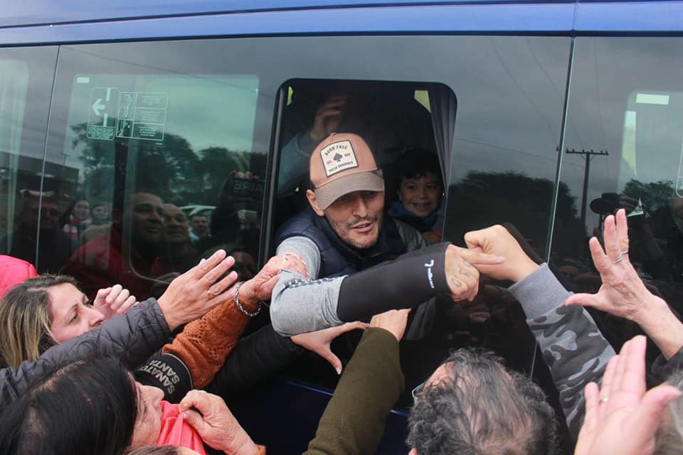 La cámara de Fran Cueva retrató y capturó un momento emocionante. Las historias con finales felices existen y hoy todos fuimos Gabi. Esto es lo que expresaba en su portal de facebook, el medio local Radio Uno 93.1MHz, ante la llegada de Gabriel Sanabria a San Javier.